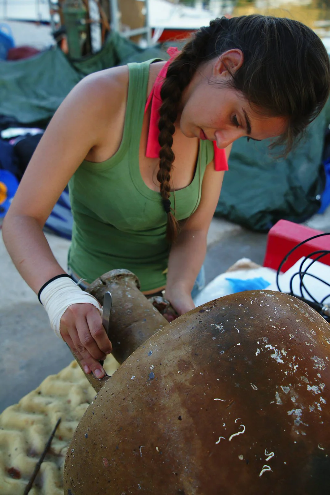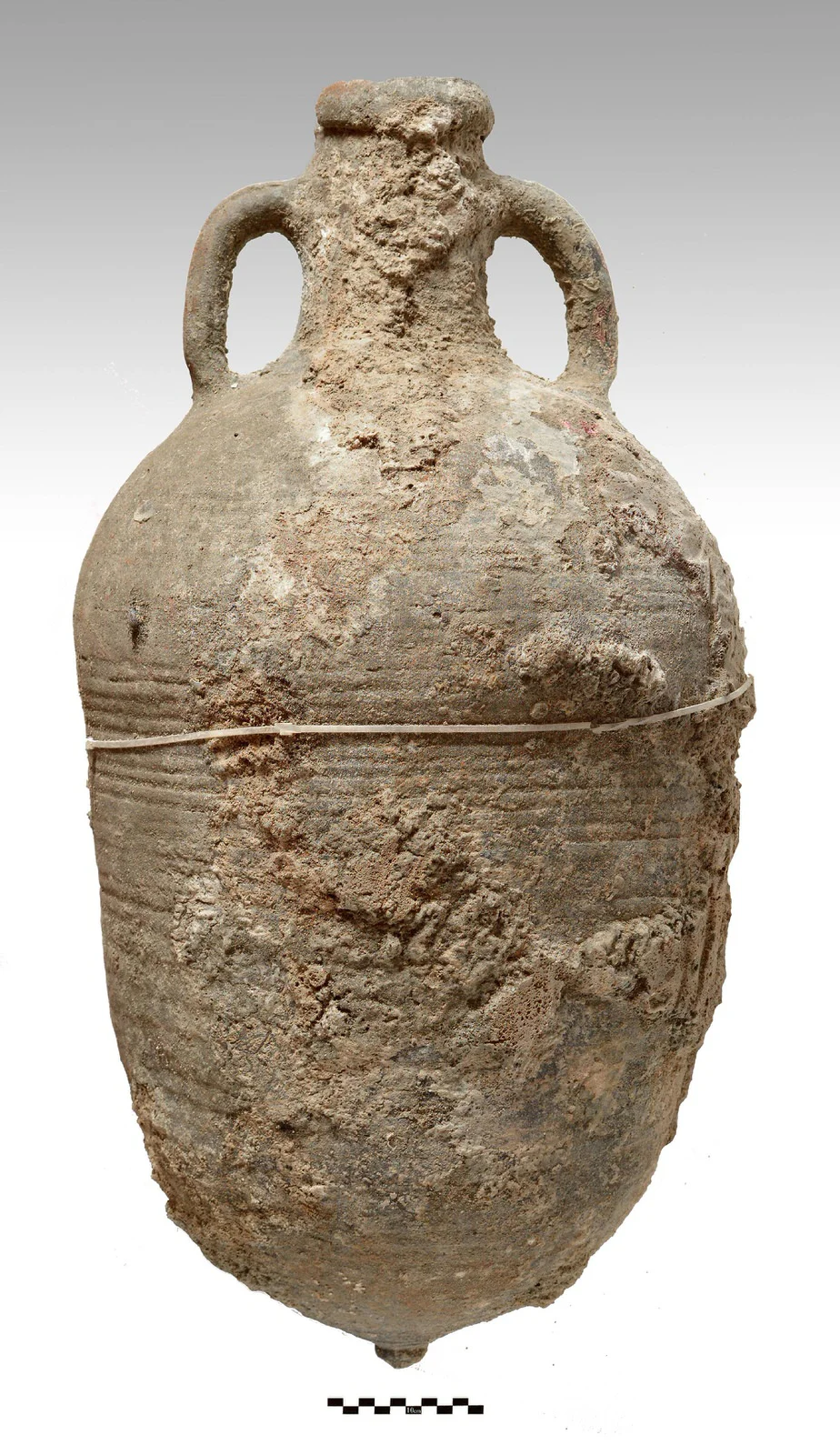 An early medieval amphora, 9-11th century A.D., before and after cleaning